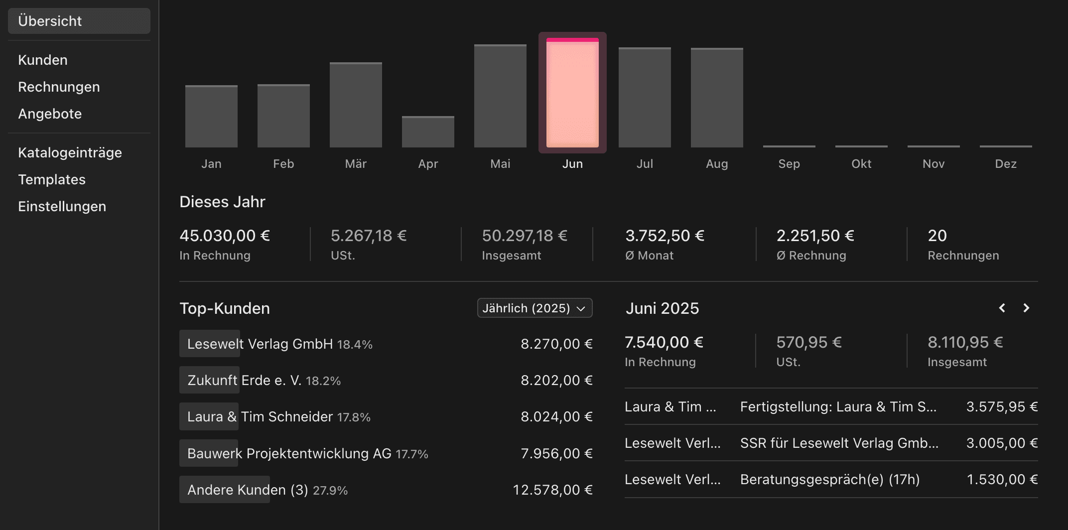 Ich wollte meine Rechnungen nicht in einer beliebigen Cloud haben und mich nicht durch ein Abo dauerhaft binden, gerade am Anfang, wenn jeder Euro zählt.
