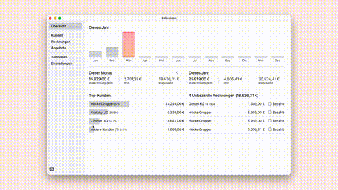 E-RechnungCakedesk ist keine Web-App, sondern läuft lokal auf deinem Computer. Das bedeutet kein Abo, keine Cloud, schnelle Performance und alle Daten unter deiner Kontrolle.