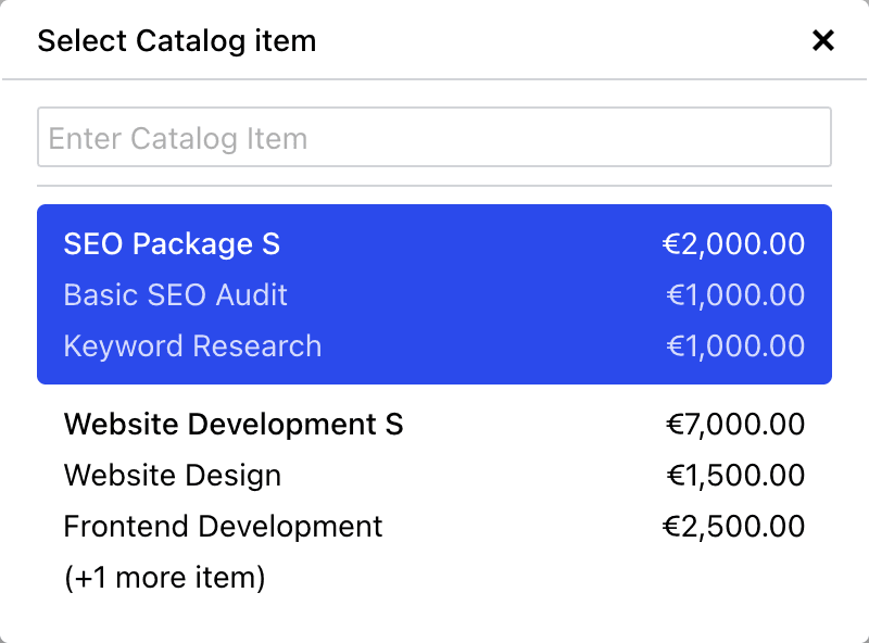 Store your most-used products and services as catalog items and insert them into any invoice in seconds.